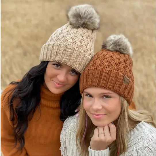 KIDS Southwestern Faux Fur Pom C.C Beanie