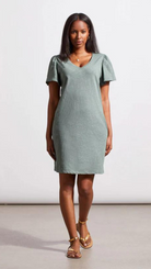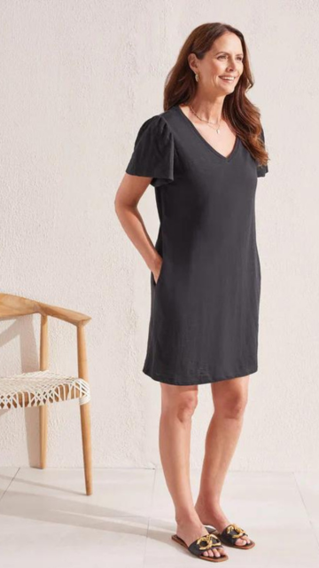 Nail an effortless one-and-done look with this flutter-sleeve dress. We can't get enough of the pop-over v-neck design, side seam pockets, 36" length, wide variety of colors, and cotton slub fabric that feels smooth against the skin.