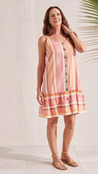 This sleeveless Giselle Dress is designed for easy wear with its loose-fitting design. The muted clay hues and hazy stripe print offer a down-to-earth and casual feel, perfect for a carefree summer day. Experience comfort and style with this dress.