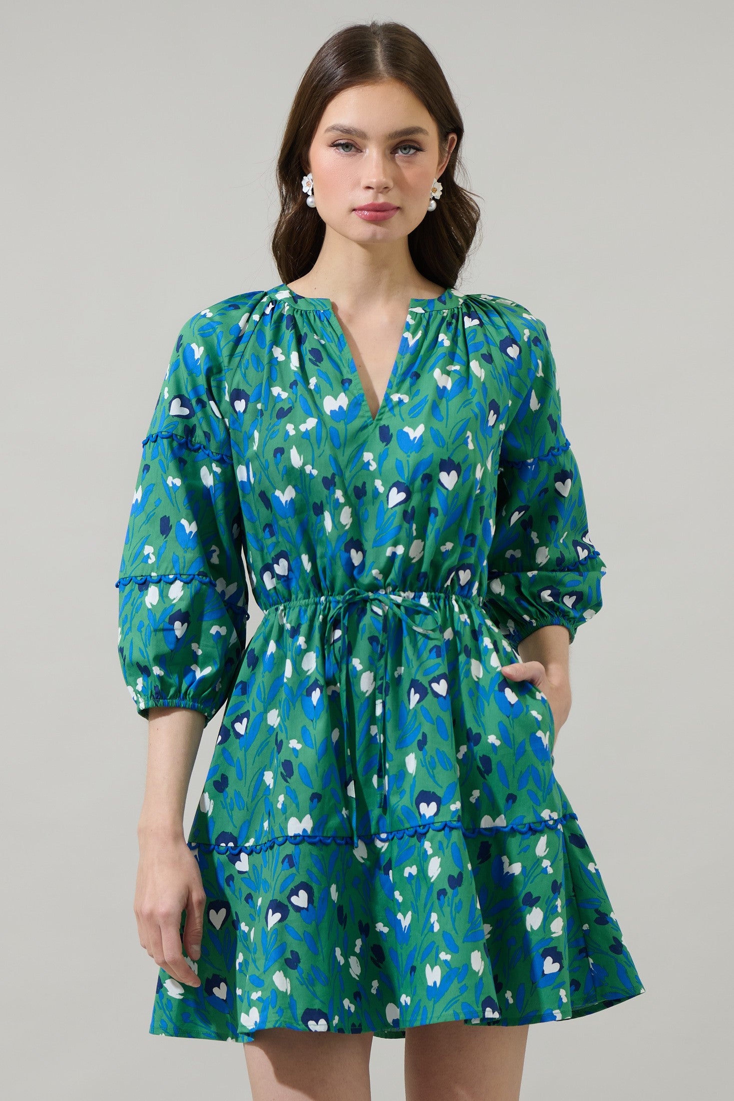Enhance your wardrobe with the Laury Floral Dabria Mini Dress. This elegant piece boasts a beautifully split neckline, complimented by balloon half sleeves and an elastic cuff. The drawstring waist allows for a personalized fit, making this dress a must-have for any occasion. Complete the look with some strappy heels for a touch of sophistication.