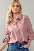 Expertly crafted with button cuffs and long sleeves, the AURELIE BUTTON DOWN TOP offers a sophisticated look for any occasion. The collared button-down shirt features a convenient chest pocket, adding both style and functionality. Elevate your wardrobe with this timeless piece.