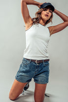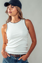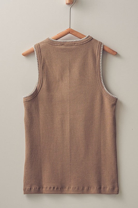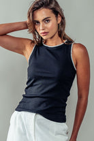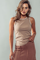 The RHEA TANK is a stylish knit tank top that features a ribbed knit neckline and armhole, providing a comfortable and flattering fit. Constructed from high-quality materials, it is perfect for both casual and dressy occasions. Stay cool and chic with the RHEA TANK.