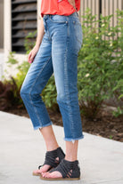 Experience comfort and style with Ada Denim - Medium by KanCan. These crop jeans feature a high-rise straight fit, perfect for any occasion. The little amount of spandex molds to your body, providing a flattering fit.