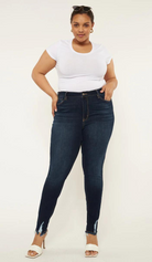 Experience the perfect fit with Annie Denim - Dark by KanCan. Our high rise super skinny jeans hug every curve, sculpting your waist down to your ankles. The dark tone adds a luxe feel to this classic design that will never go out of style. Crafted with stretchable denim and featuring a 5-pocket design, frayed hem detail, and single-button front, these jeans are both comfortable and stylish.