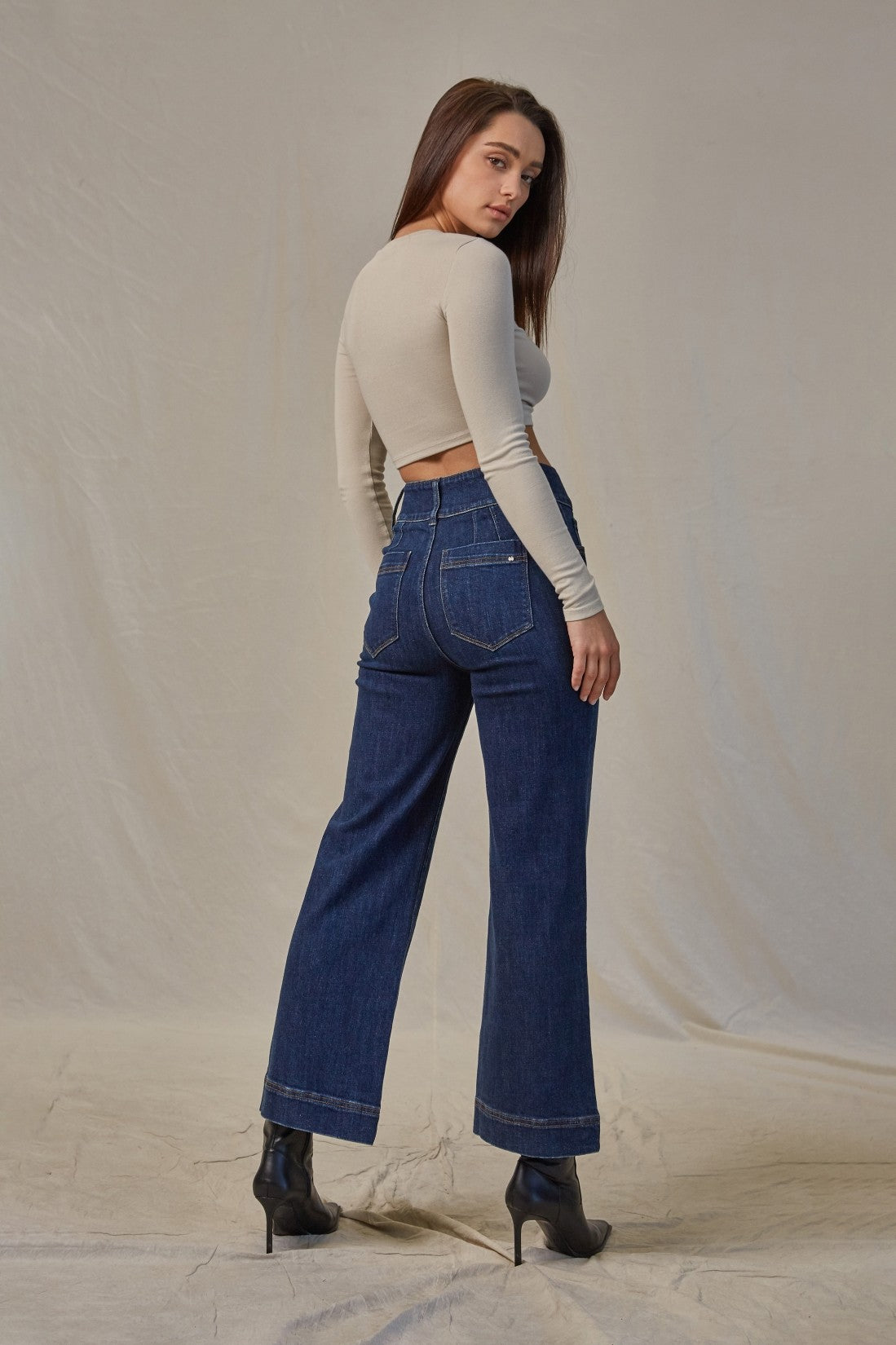 The ARI WIDE LEG CROP offers a super high rise and wide cropped legs, creating a flattering and modern silhouette. Perfect for those looking for a stylish yet comfortable fit, these pants are sure to become a wardrobe staple. With a fit that elongates the legs and a trendy crop length, these pants are both functional and fashionable.