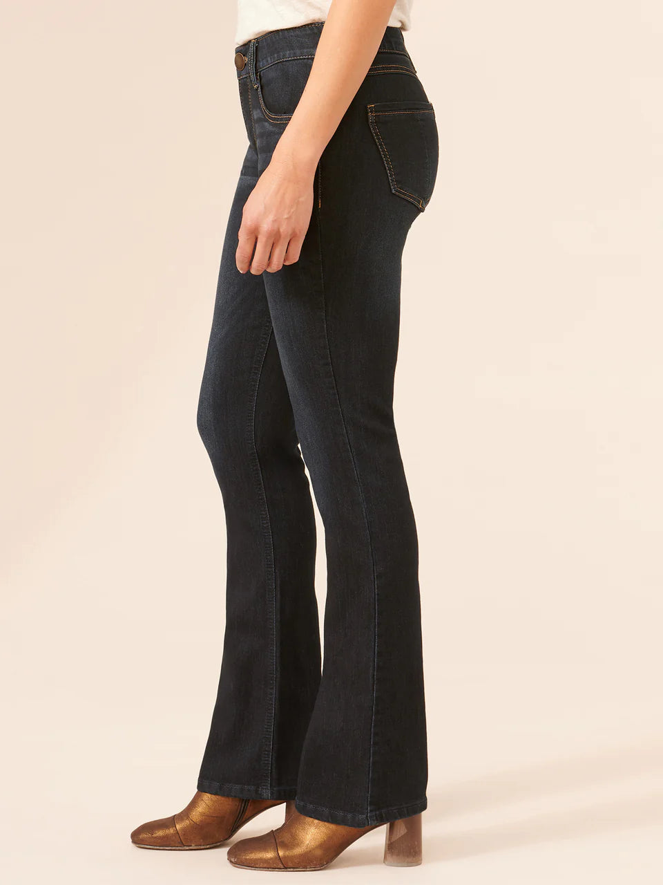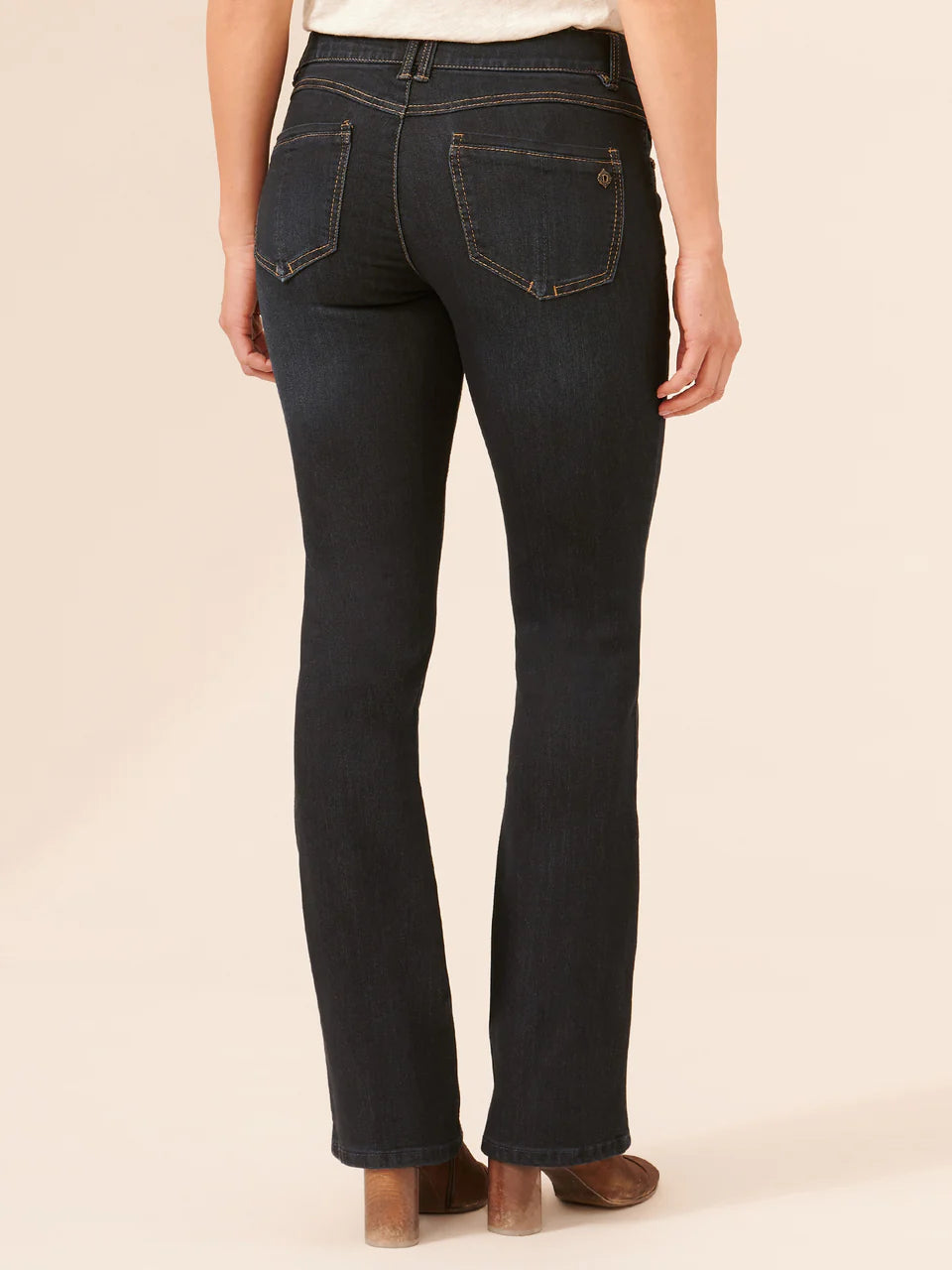Elevate your denim game with MAGIC DENIM DARK BY DEMOCRACY. The indigo wash and delicate whiskering gives a trendy, lived-in look. Enjoy a figure-flattering Itty Bitty Boot style and a no-gap stretchy waistband for worry-free wear. Plus, slimming power-mesh panels and strategically placed back pockets add flattering details.