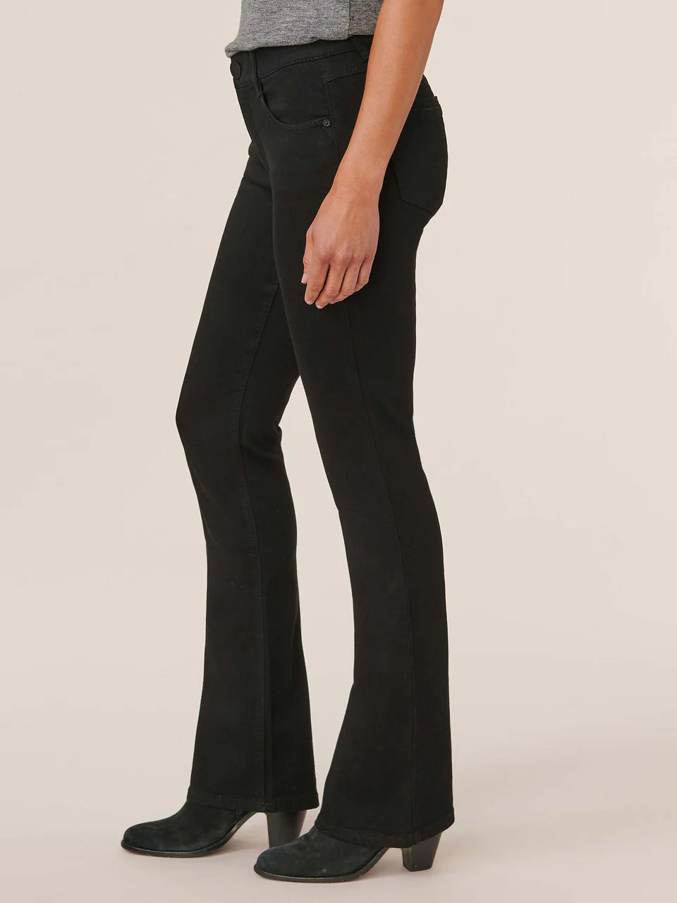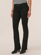 Introducing our MAGIC DENIM BLACK by Democracy, a must-have wardrobe staple for all women. These stretch jeans feature a baby bootcut leg opening and an ink-black wash that exudes versatility. Crafted from smooth and flexible denim, these jeans maintain their shape all day long thanks to our exclusive "Ab" solution® fit technology. Never sacrifice comfort for style again with Democracy.
