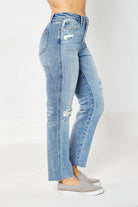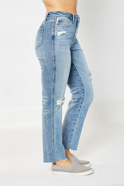 Introducing the "High Rise Magic Rigid Straight" jeans, a fashionable nod to the 90s comeback. These straight-leg jeans are a versatile choice for any season. What sets them apart is their innovative "Half Rigid Technology" combined with stretch, a best-selling feature in Judy Blue Jeans. The front is crafted from 100% cotton for that classic, figure-hugging feel, while the back boasts the comfort of Judy Blue STRETCH. Dress them up or down, and you'll have a chic, comfortable look that's right on trend.