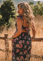 This beautiful floral chiffon maxi dress has beautiful summer ruffle details