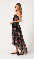 As an industry expert, I highly recommend the Nicole Dress for any special occasion. This floral maxi dress features a smocked neckline, one shoulder long sleeve, and an elastic waistline for a perfect fit. The high low hem and tiered skirt with ruffle trim add a touch of elegance. Lining attached for comfort.