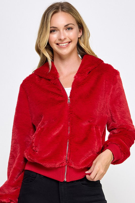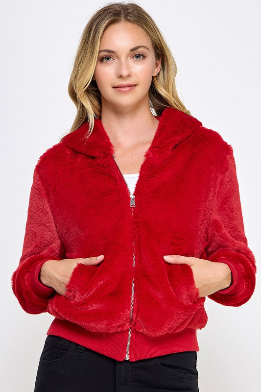 Stay warm and stylish this winter with our Carter Sweater. Featuring a fur hood and zip up jacket, this top is perfect for any occasion. The long sleeves and banded cuffs provide a comfortable fit, while the side pockets add convenience.