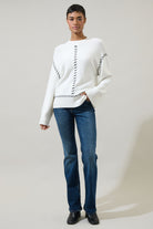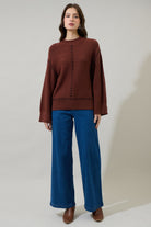 Introducing the Dills Stitched Dropped Shoulder Sweater. Stay cozy in this relaxed-fit tunic with long bell sleeves and a round neckline. The unique stitch design adds a touch of style, and the dropped shoulder allows for a comfortable and relaxed fit. Layer over a shirt for added warmth.