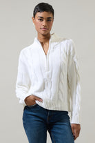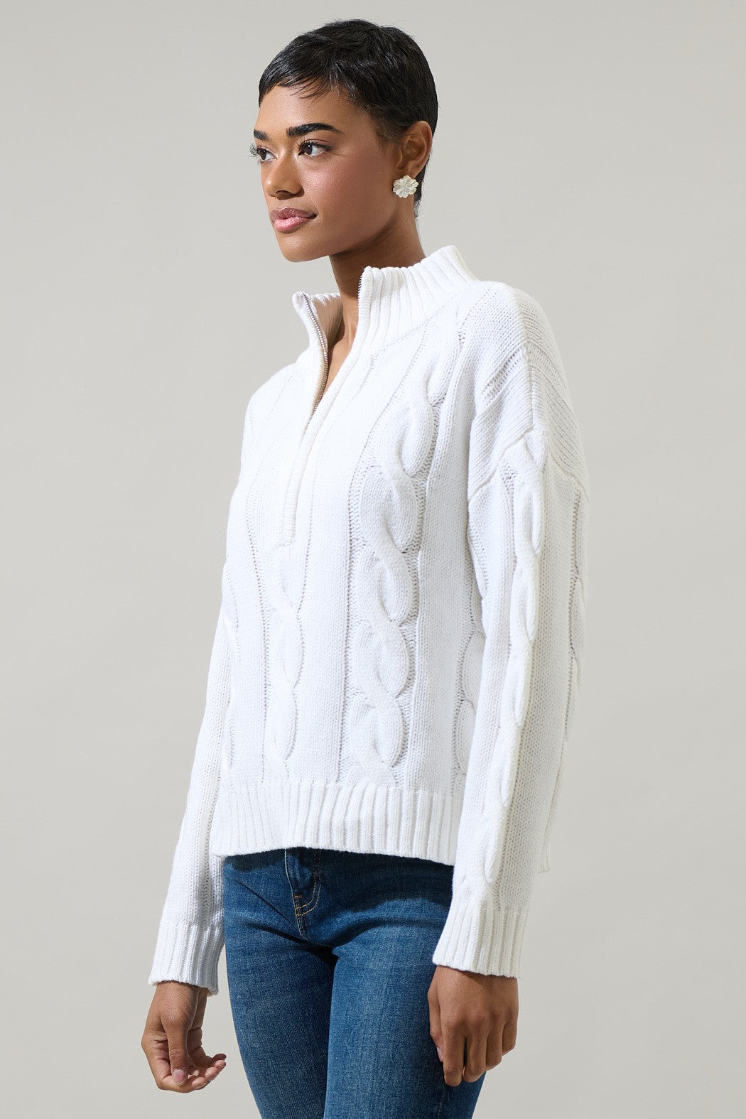 Upgrade your wardrobe with the Wadley Zip Up Cropped Sweater. This knit sweater boasts a unique twisting pattern and a flattering cropped length for a trendy look. With a half zip up and a mock neck, this sweater is both stylish and functional. Perfect for pairing with jeans or pants, this sweater will elevate your outfit in no time.
