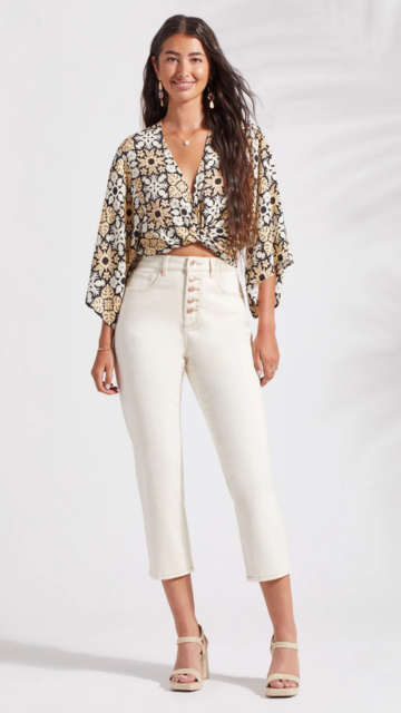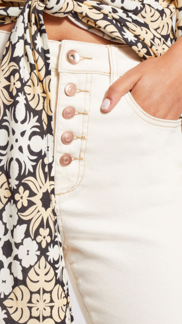 Experience style and comfort with our Lorelai Pant. These high-waisted crop pants feature a straight leg design and 26'' inseam for a flattering fit. Made with natural cotton and a stretchy fabric, they offer both comfort and style. Complete with a button-up fly detail, they are a must-have for any wardrobe.