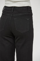 Introducing the Scarlett Denim in Black by Mica Denim. These wide leg crop jeans provide the perfect blend of comfort and style. With a front rise of 11", inseam of 27", and leg opening of 19", these jeans offer a flattering fit. Elevate your wardrobe with the Scarlett Denim.