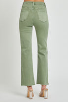 Expertly crafted for style and comfort, the ORIANA JEANS are the perfect addition to your wardrobe. The high rise waist and raw hem with slits provide a flattering silhouette, while the olive color adds a touch of versatility. Elevate your look with these must-have straight pants.