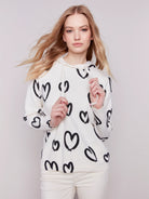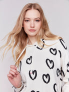 Stay cozy and stylish with this high-quality sweater featuring a fun heart print design and a hood for extra warmth and comfort. Perfect for any casual or outdoor occasion, this durable hoodie will keep you looking and feeling great all season long.