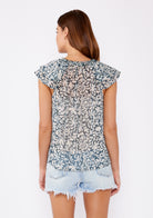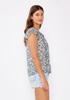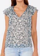 Introducing the LAVINA TOP chiffon blouse. Embrace feminine elegance with delicate floral patterns and flutter sleeves. The split v-neckline with ruffle trim and tie neck adds charming details. Plus, a detachable lining makes it versatile for any occasion. Elevate your collection with this must-have piece.