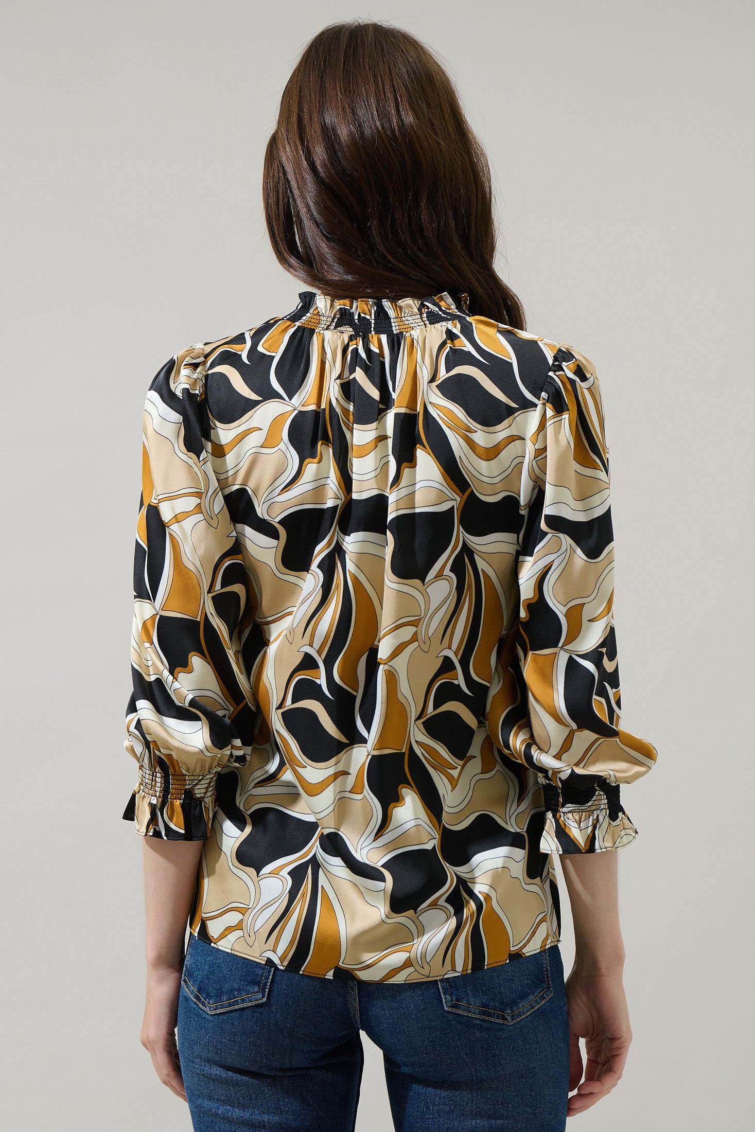 The MALDRONE TOP features a Madrone abstract groover design with a split neck blouse style. Made with scientific precision and industry expertise, this blouse offers a unique and sophisticated look for any occasion. Its abstract pattern adds a touch of elegance, making you stand out in a crowd. Upgrade your wardrobe with this one-of-a-kind piece.