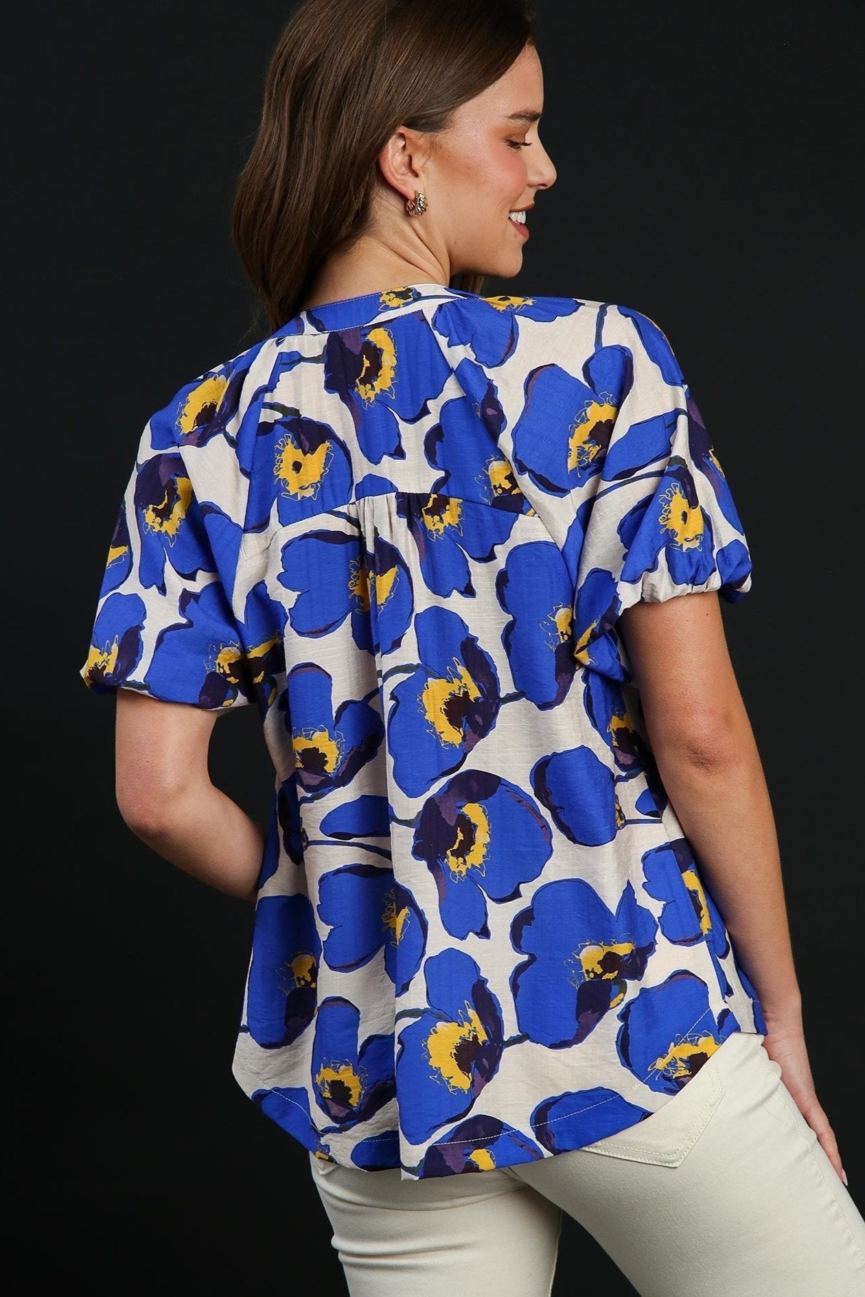 Expertly designed with a floral print and a boxy cut, the MAXENE BLOUSE is the perfect addition to your wardrobe. Its mid button down and split neck provide a versatile and sophisticated look, while the short puff sleeves add a touch of femininity. Stay on-trend and comfortable in this stylish blouse.