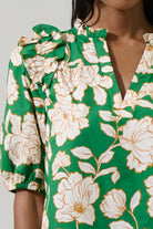 Discover the versatility of the Lucena Floral Paz Poplin Short Sleeve Top. Featuring a split neckline and half sleeves, this top is perfect for both casual and formal occasions. With ruffled accents along the shoulders and neckline, it exudes a poplin style that can effortlessly be paired with white pants or trousers.