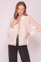 Elevate your style with the CHER BLOUSE. Made from a light and airy fabric, it boasts an ethereal sheen and a charming front tie closure for a customizable fit. Featuring long sleeves and a classic collar, this blouse offers a refined finish for any occasion. Dress it up or down for effortless sophistication.
