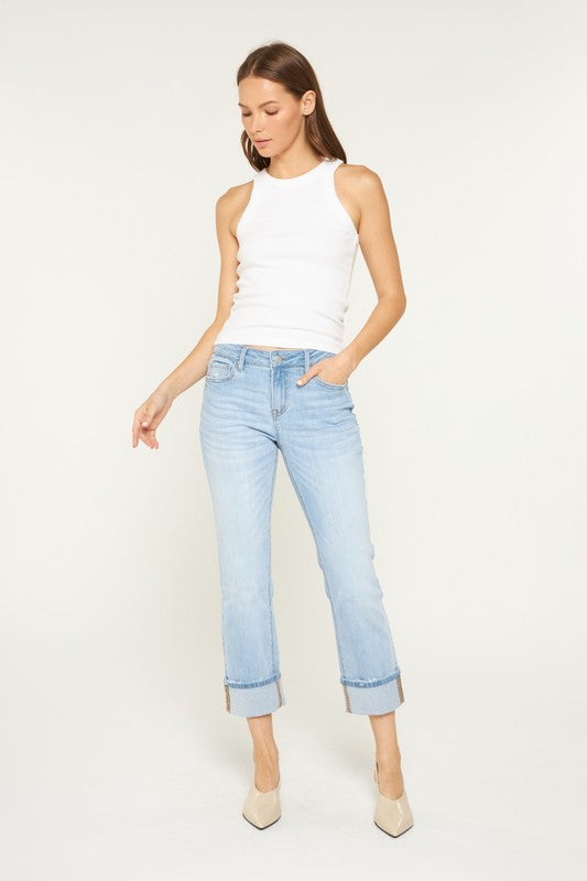 Get ready for the ultimate level of comfort with the Bailey jeans by MICA! The mid rise cuff and straight leg design combine to create a flattering fit that feels super soft against your skin. You'll never want to take these jeans off!