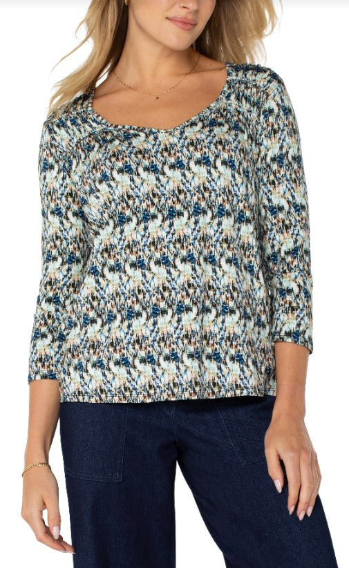 Indulge in luxury with the Caroline Top. This top features a stunning 3/4 sleeve design and is adorned with a gorgeous print by Liverpool. Elevate your wardrobe with this sophisticated and exclusive top that will surely make a statement.