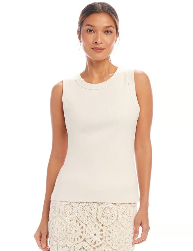 This ribbed tank is made of high-quality cotton ribbed knit material, providing a comfortable and form-fitting feel. A versatile essential for any spring wardrobe.