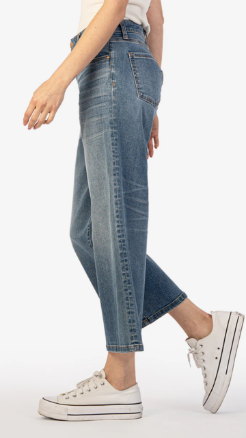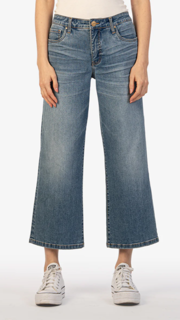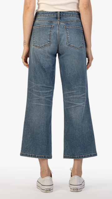 Experience the ultimate comfort and style with the CHARLOTTE PANTS MEDIUM BY KUT FROM THE KLOTH. Made from low-stretch denim, these wide-leg jeans are inspired by retro culottes and get even softer with wear. Step back in time while looking effortlessly chic.