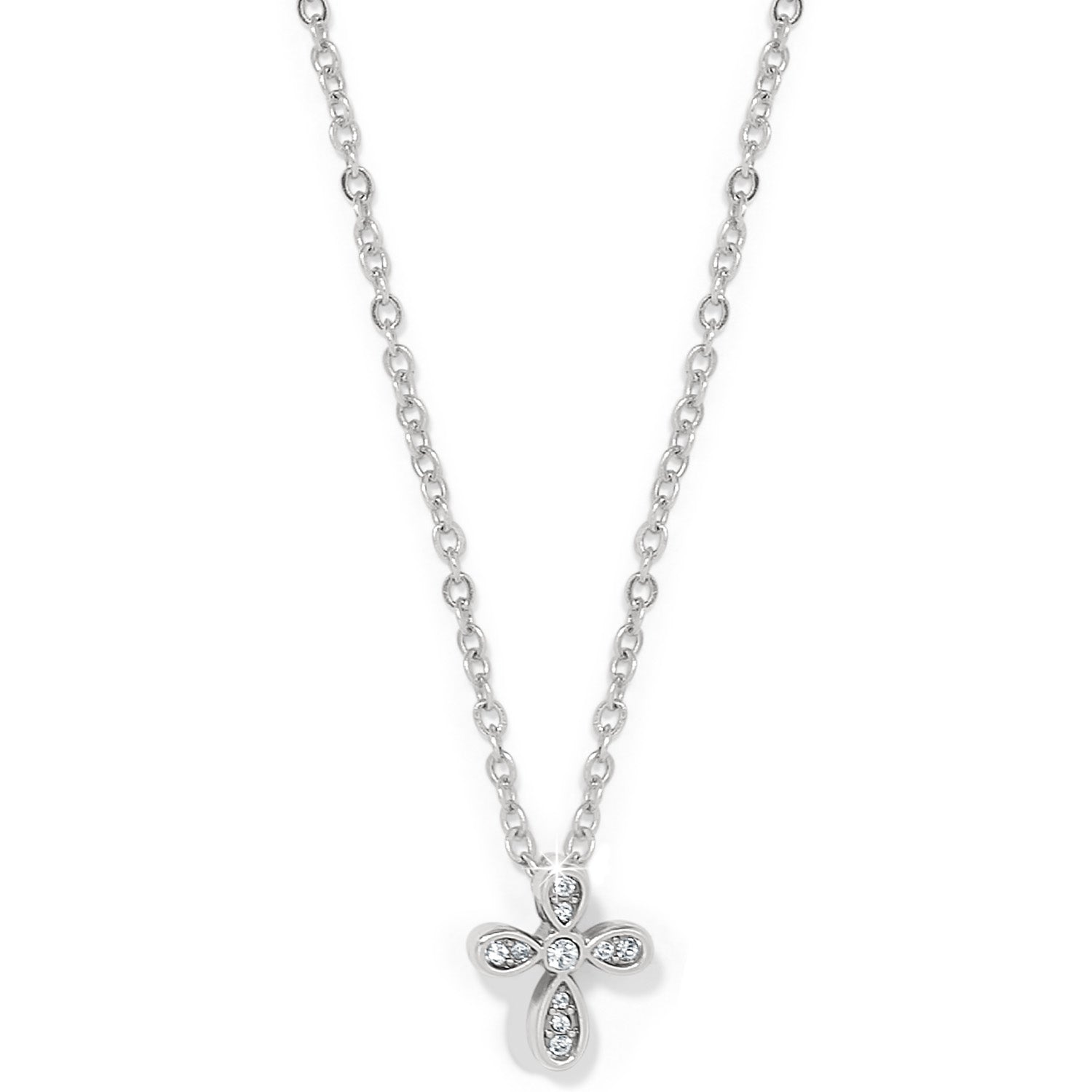 Petite jewelry makes its own statement with this delicate symbol of devotion capped with artisan hand-set crystals.