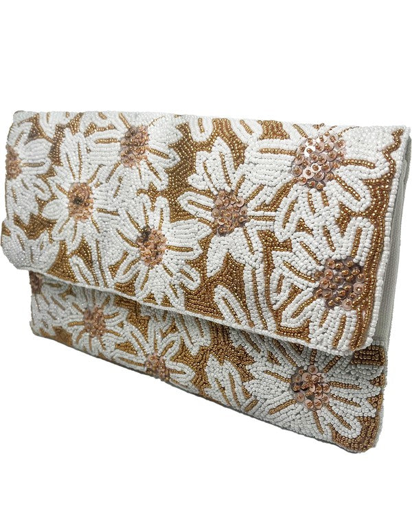Add a touch of whimsy to your evening attire with our Flowers Bronze Beaded Clutch. This unique accessory is adorned with stunning floral designs, crafted with delicate bronze beads. Let this playful piece be your statement piece for any special occasion. (Ditch the boring bag and go for a fun, floral clutch!)
