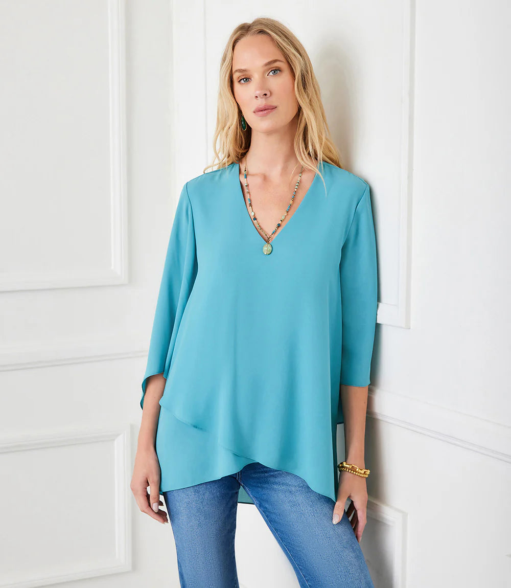 This Bracelet Sleeve Asymmetric Top is made from silky crepe material for an elegant and comfortable feel. The flowy, layered hem adds a touch of movement, perfect for a day at work or a casual night out. Transition effortlessly from day to night with this versatile top.
