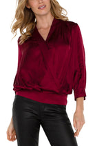 Featuring a sophisticated design and exquisite bracelet sleeves our shawl wrap blouse in Wine is crafted from soft satin, with a smocked back panel for an easy fit. Perfect for pairing with tailored trousers or with sleek denim for a casual yet refined look.