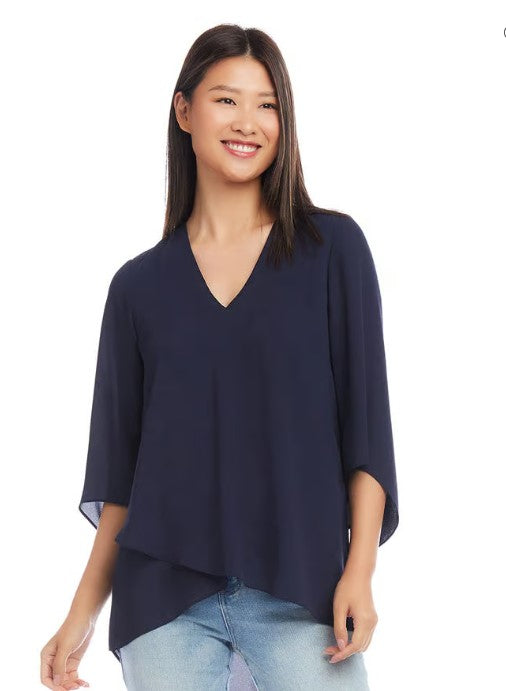 Effortlessly transition from day to night with our luxurious Jackie Top. Crafted from silky crepe, this Bracelet Sleeve Asymmetric Top offers a comfortable and elegant feel. The flowy, layered hem adds a touch of movement, making it perfect for any occasion. Make a statement with this versatile and sophisticated top.