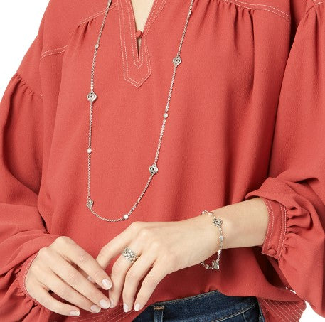 This Brighton Jewelry bracelet features a delicate Interlok knot motifs symbolizing everlasting love and friendship. Its petite size is perfect for layering and adds a touch of elegance to any outfit. Crafted with precision and expert design, this bracelet is a must-have for any jewelry collection.