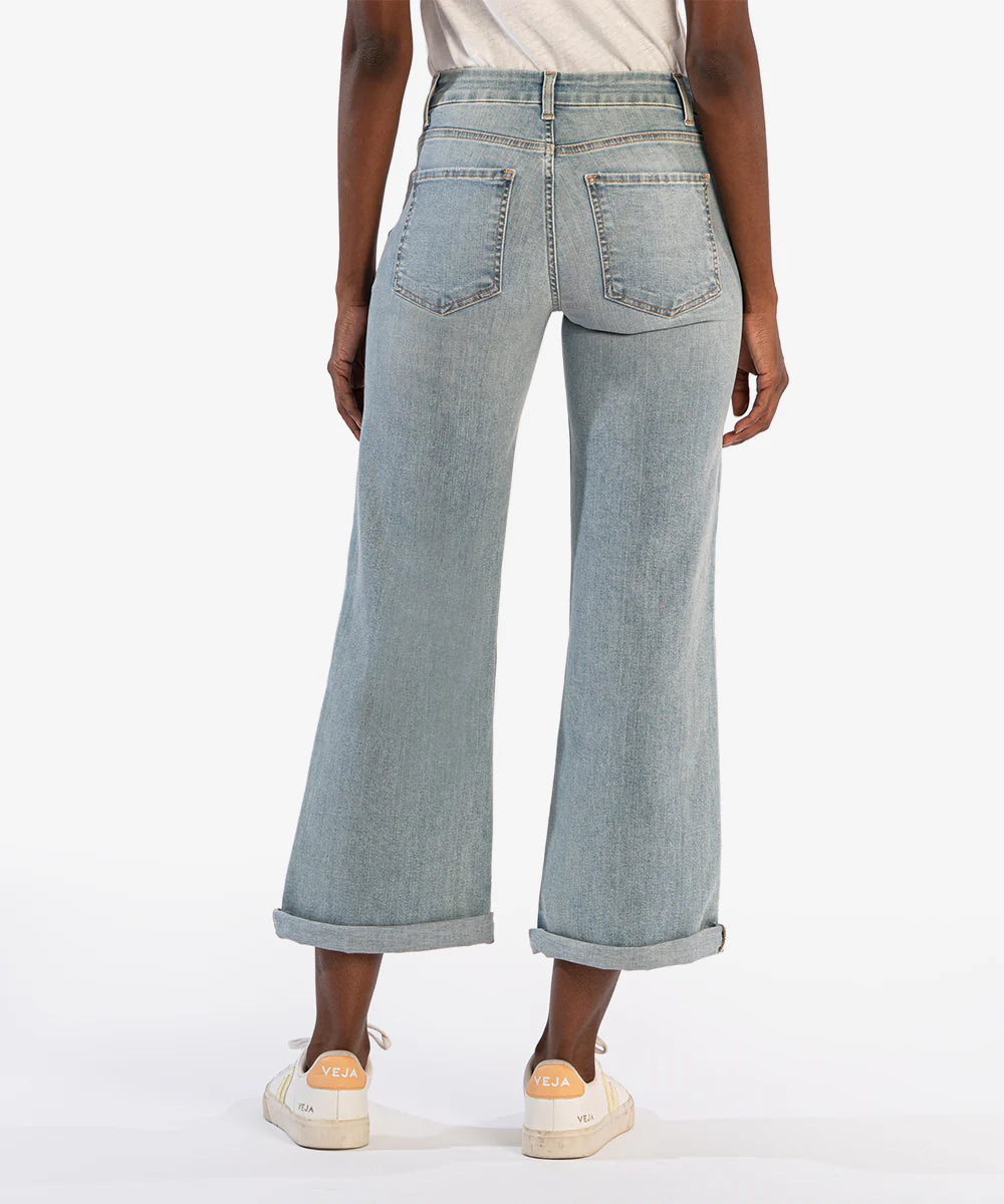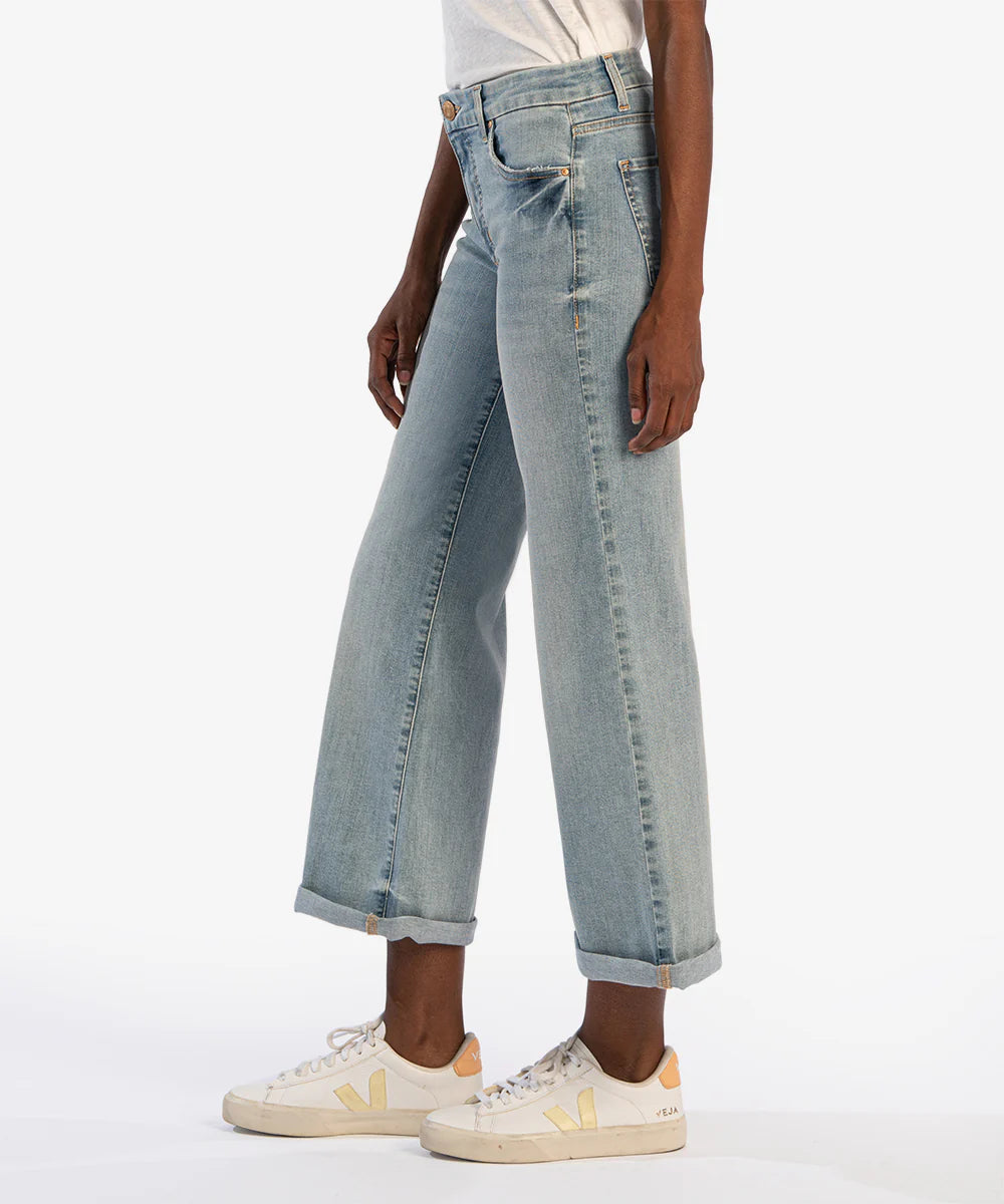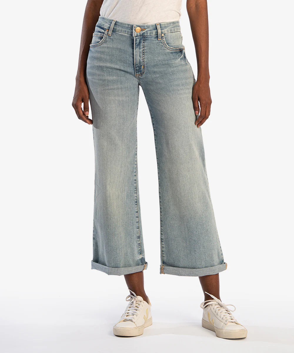 - Flaunt retro-chic style in these fabulous light-wash jeans featuring a mid rise and ankle-grazing wide legs.