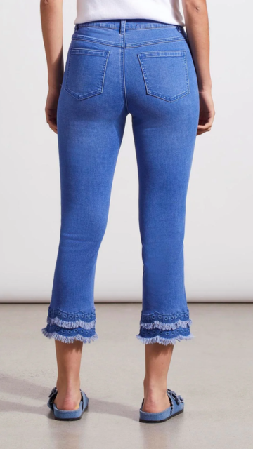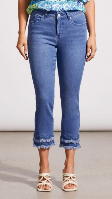 Introducing Audrey Pant, the perfect addition to your wardrobe. Designed with a sleek straight leg and cropped 26'' inseam, these jeans elevate your style while the subtle embroidered hem adds a touch of elegance. With a flattering hugging fit and mid rise tummy tuck waist, these jeans provide both style and comfort. Five functional pockets allow you to keep your essentials close while making a statement.