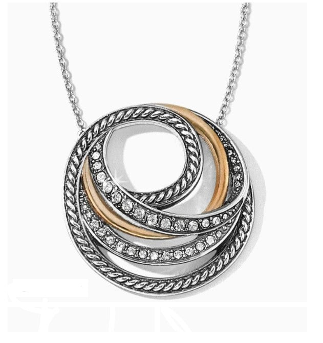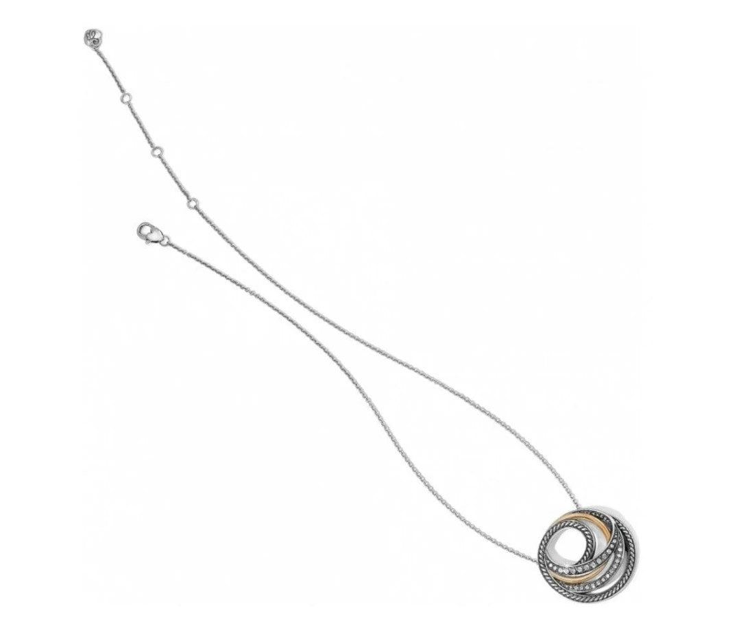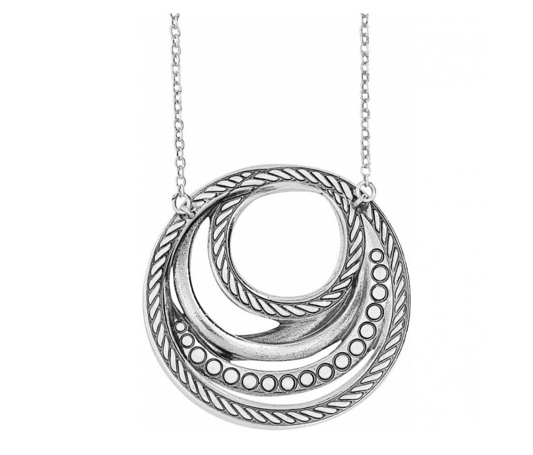 Elevate your look with our Neptune's Rings Short Necklace by Brighton. Made with layered roped silver, pave crystals, and smooth silver, this pendant adds a modern, clean touch to your outfit. With a lobster claw closure and adjustable length, it's easy to wear and versatile. Part of the Brighton brand with a warranty.