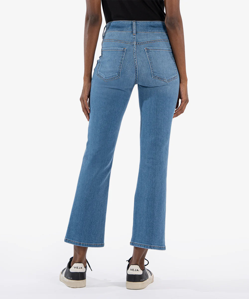 Classic and chic, these ankle-cropped flare jeans are made from premium stretch denim and faded for a lived-in look with fun details.