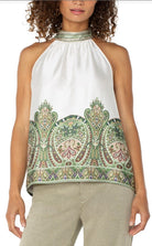 Introducing the Selene Top, a luxurious halter top featuring a stunning ivory and sage green print. Elevate your wardrobe with this elegant and exclusive piece that exudes sophistication and style. Perfect for any occasion, this top is sure to turn heads and make a statement wherever you go.