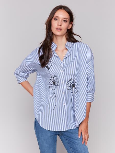 Elevate your style with the Shanna blouse from Charlie B. The classic button top has a pop of print to elevate your next outfit this season. The fabric is super soft and cool to the touch! We LOVE this new arrival!