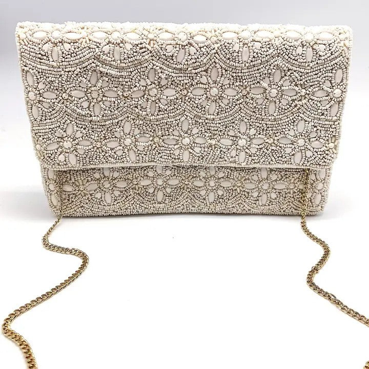 Be the talk of the party with the Tanya Clutch! This beaded ivory clutch is the perfect accessory for any special event this season. Its elegant design adds a touch of glamour to any outfit, making you stand out in the best way possible. Complete your look with the Tanya Clutch this season!