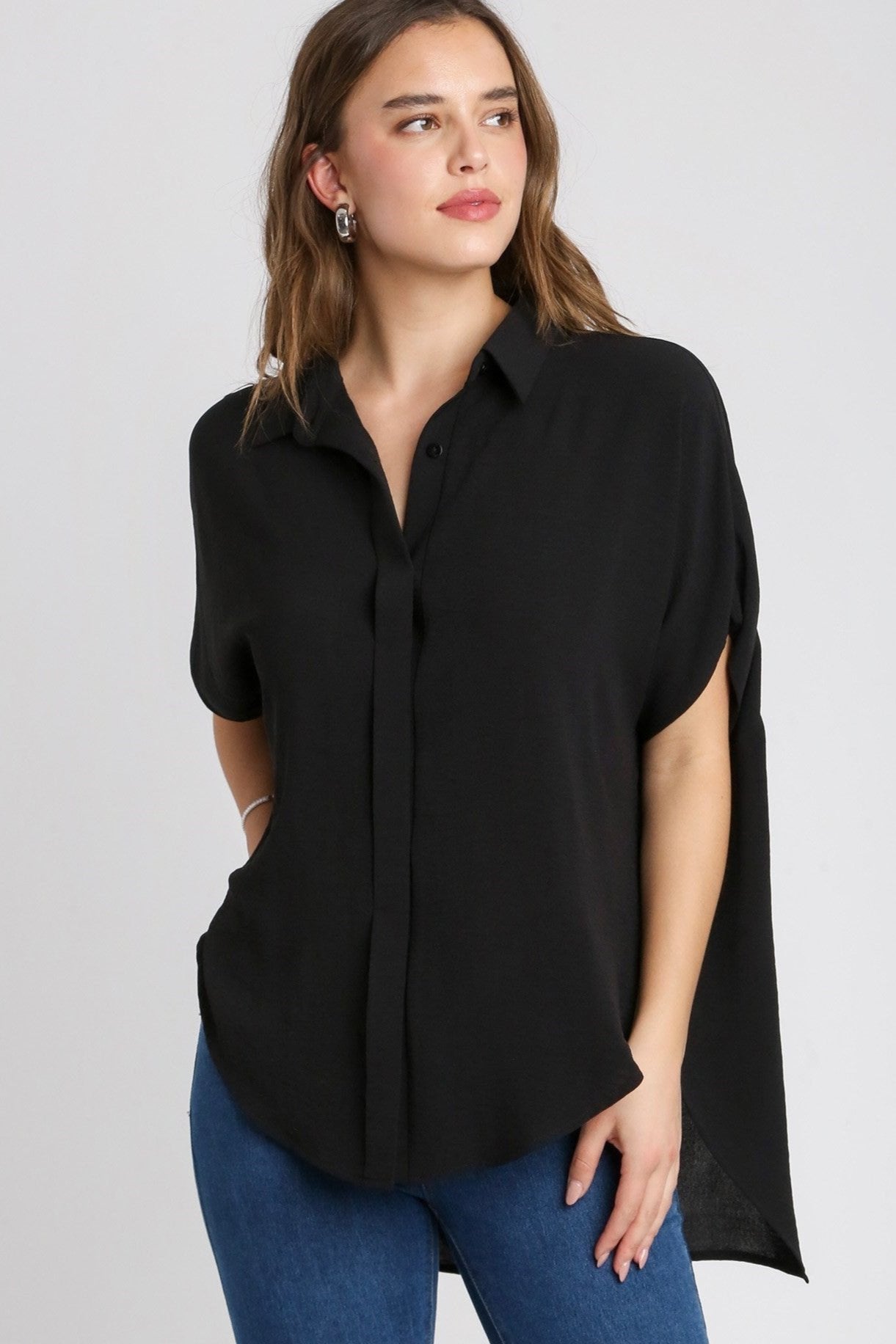 Introducing the VICTORIA TOP, a stylish and versatile oversized button-down shirt. Made with a covered placket for a streamlined look, it features a hi-low hem that adds a touch of modernity. Perfect for a casual yet sophisticated look, this shirt is a must-have in any wardrobe.