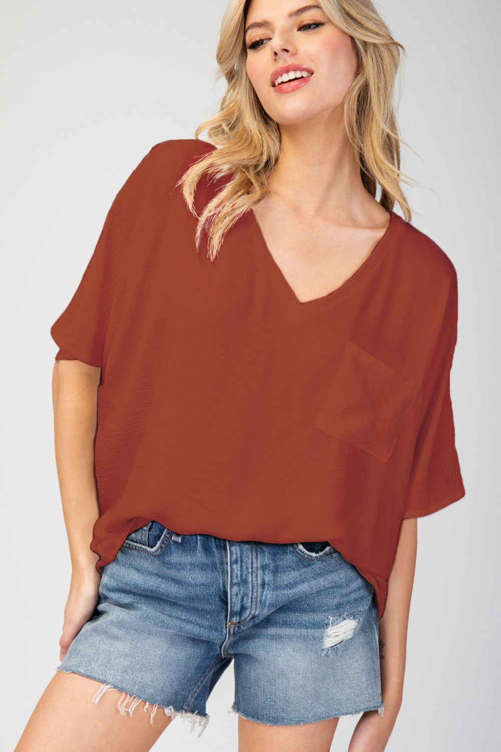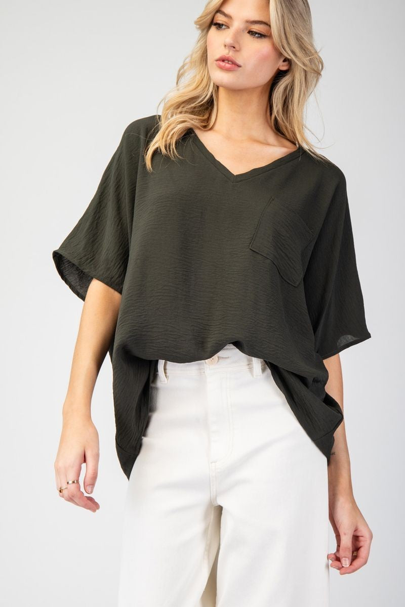 The WYNN TOP is a versatile addition to your wardrobe. Made from a high-quality woven fabric, this top features a flattering V-neckline, short sleeves, and a convenient chest pocket. Whether dressed up or down, enjoy the comfort and style of this must-have piece.